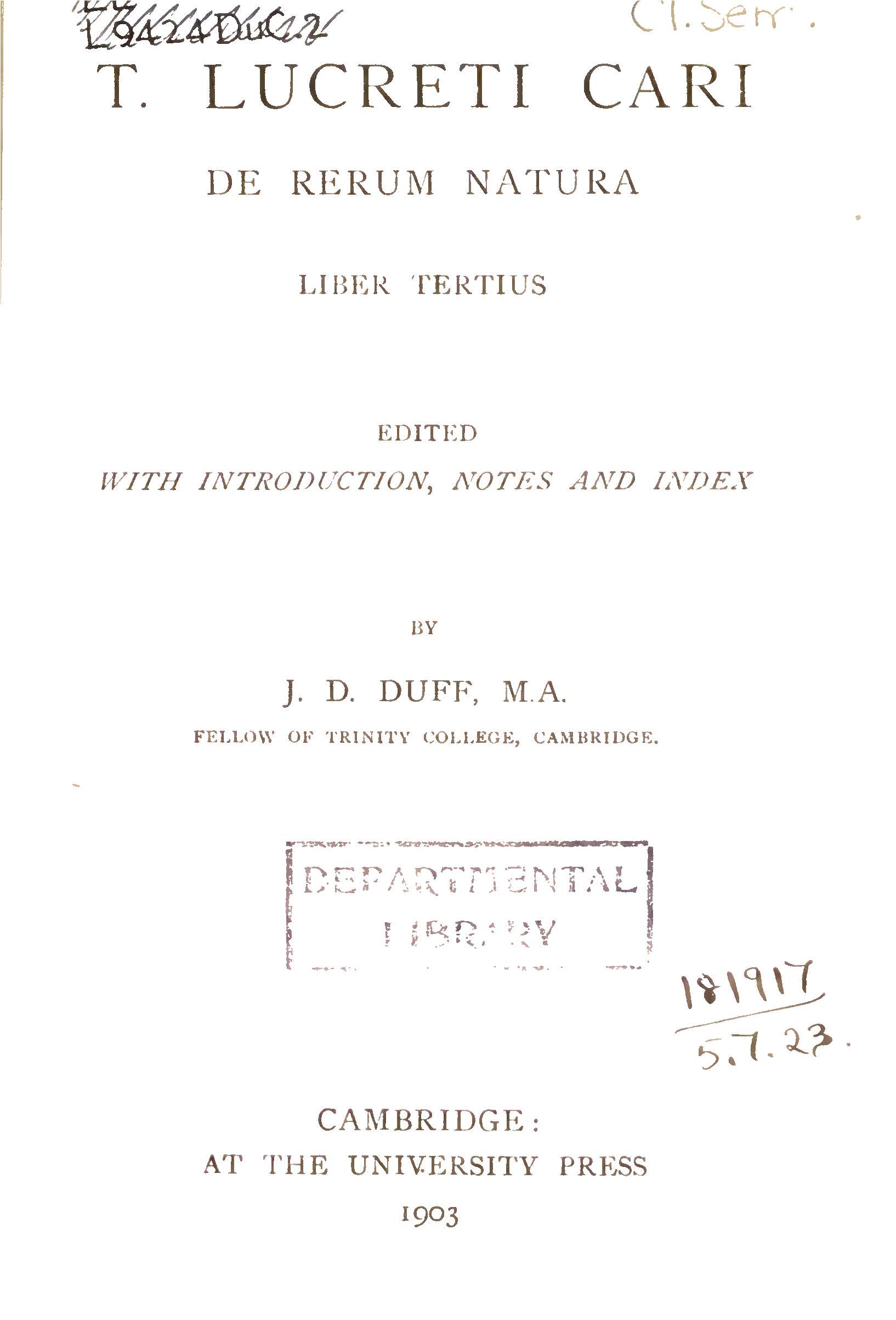 Novel De rerum natura liber tertius