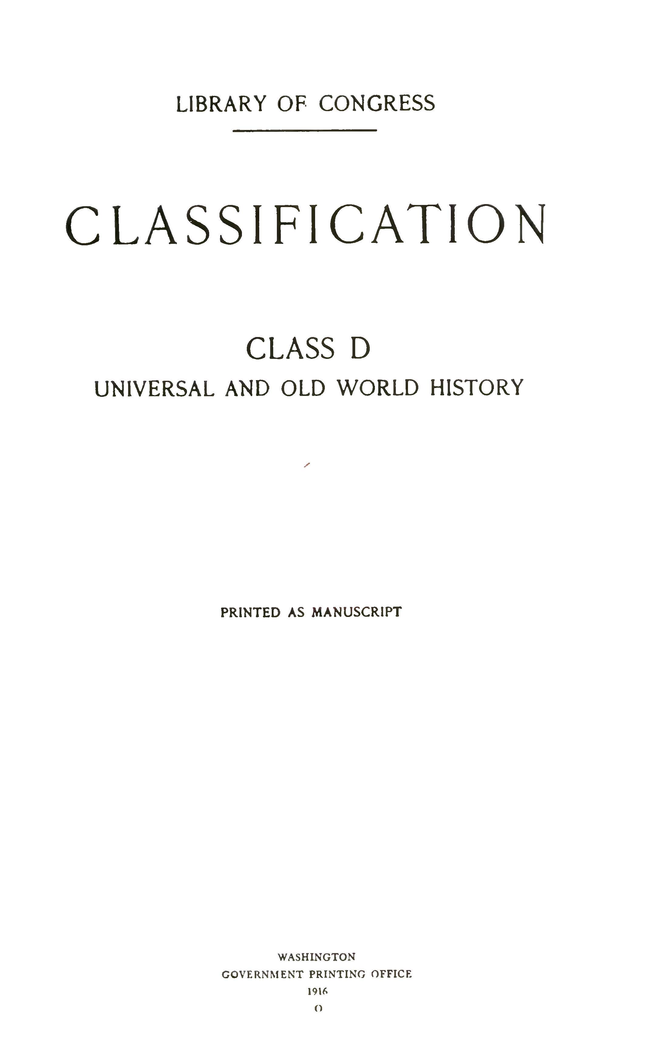 Novel Classification. Class D History, Universal and old world history